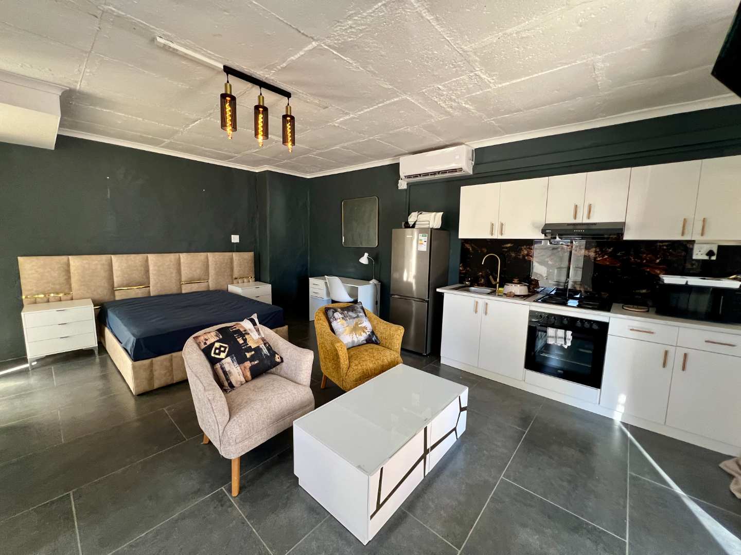 Semi-furnished with brand-new furniture and appliances, including custom-made beds, sofas, lounge sets, TVs, washing machines, microwaves and fridges and dining sets.