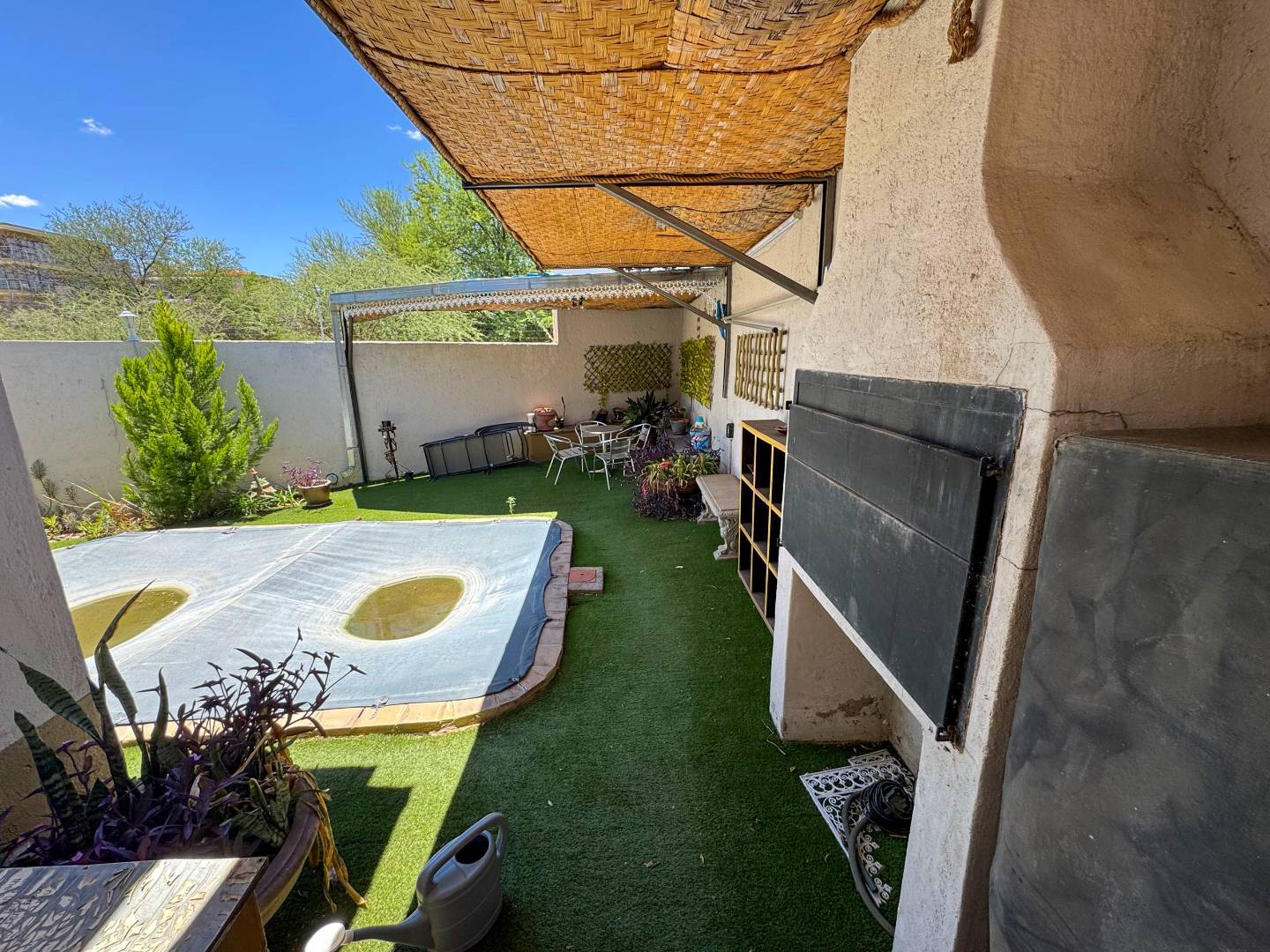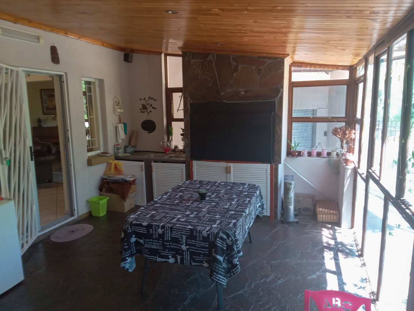 -Enclosed patio with a built-in braai